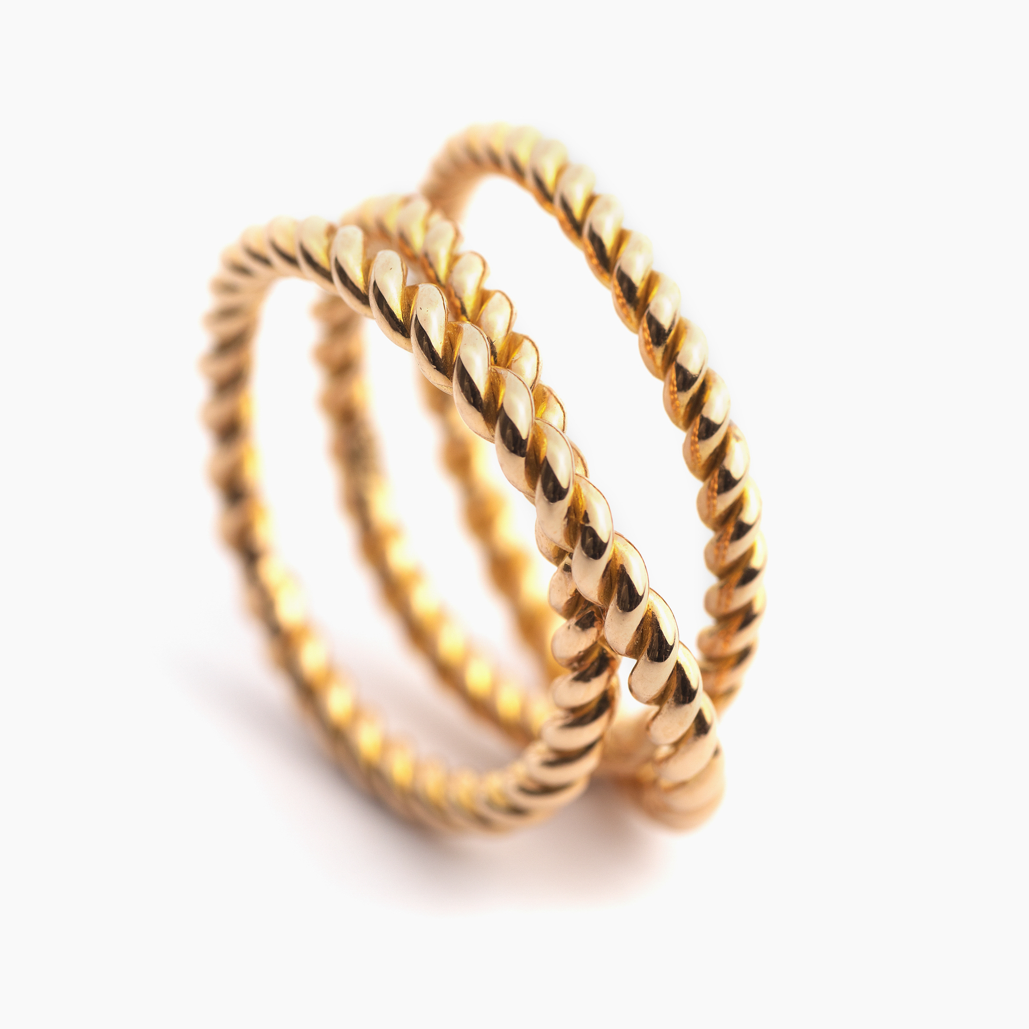 Un intreccio di 3 fili ritorti in oro rosso danno vita a questo anello elegante e sportivo allo stesso tempo.